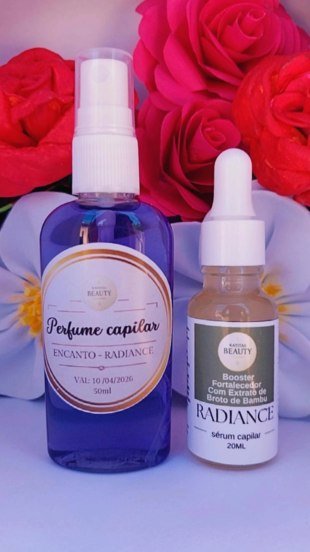 Booster Fortalecedor + Perfume Capilar Encanto Radiance , Esse combo reúne o cuidado essencial para quem busca fios mais fortes, saudáveis e perfumados com suavidade.
